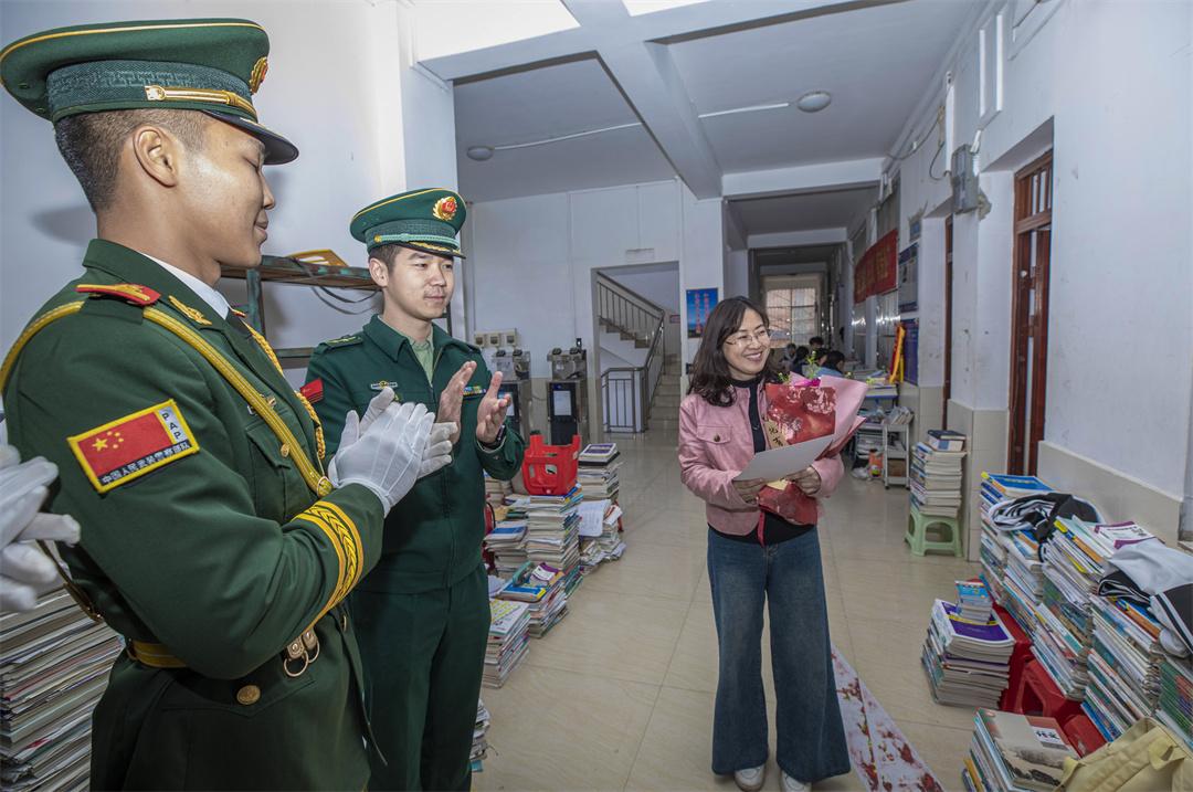 在“三八”國(guó)際婦女節(jié)來(lái)臨之際,武警廣西總隊(duì)百色支隊(duì)“武警專遞”再次出發(fā),帶著鮮花與賀卡,向駐地官兵家屬送去節(jié)日祝福和問(wèn)候。