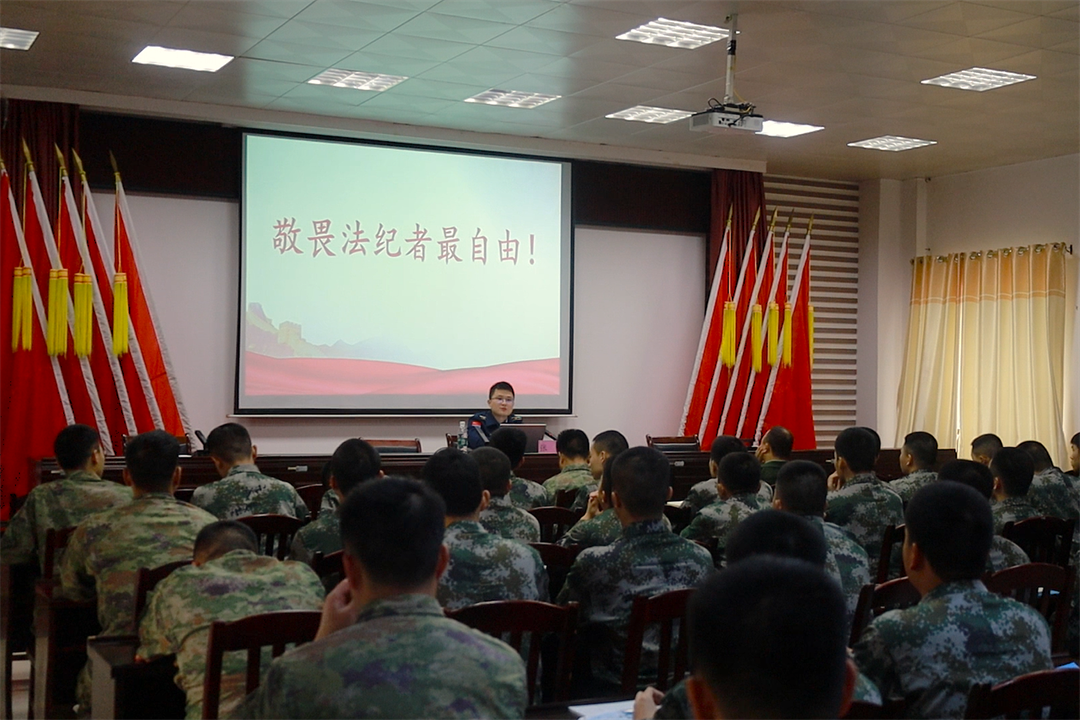 軍事檢察官圍繞刑法、國防法、兵役法等法律法規(guī),重點剖析近年來網(wǎng)絡(luò)涉密、涉賭涉貸、軍民糾紛等典型案例,通過播放警示教育視頻、展示涉案物品照片,再現(xiàn)因法律意識淡薄導致的慘痛教訓。