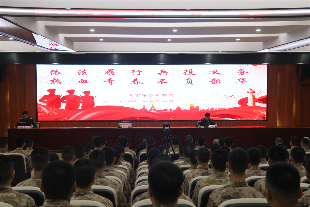 連日來,解放軍南寧軍事檢察院聯(lián)合廣西壯族自治區(qū)人民政府征兵辦公室,開展2025年度春季入伍預定新兵役前普法教育,以“需求清單+法治服務”的普法模式,通過現(xiàn)場及視頻連線方式授課65場次,為8500余名預定新兵送上“法治第一課”。