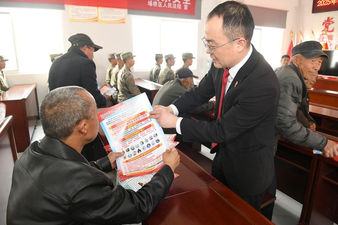 圖為法官給群眾發(fā)放普法宣傳彩頁。