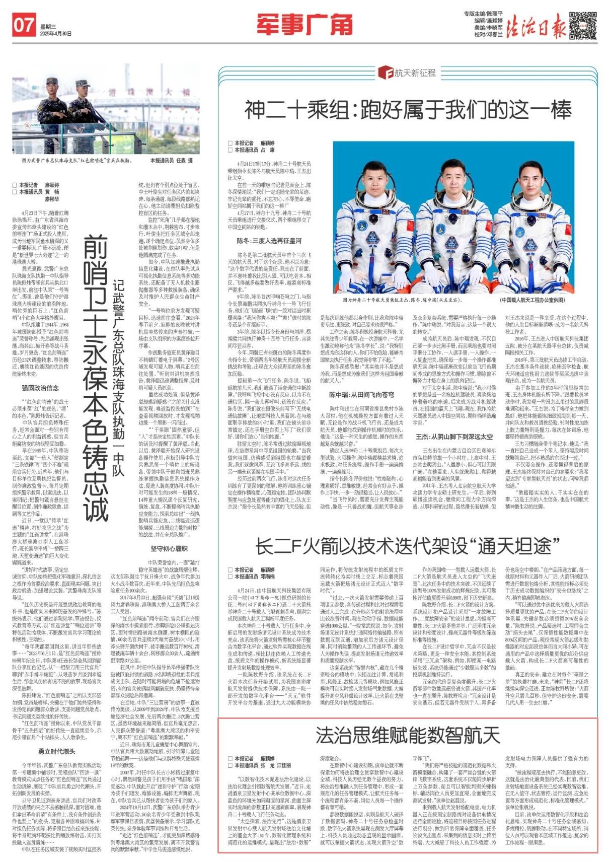 “太空探索,法治先行”,這是酒泉衛(wèi)星發(fā)射中心載人航天發(fā)射場法治文化墻上的鎏金大字。如今,數(shù)智化管理系統(tǒng)和規(guī)范化的運(yùn)維模式,呈現(xiàn)出“法治+數(shù)智”深度融合。