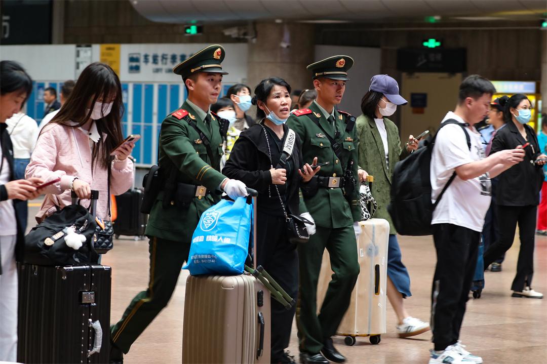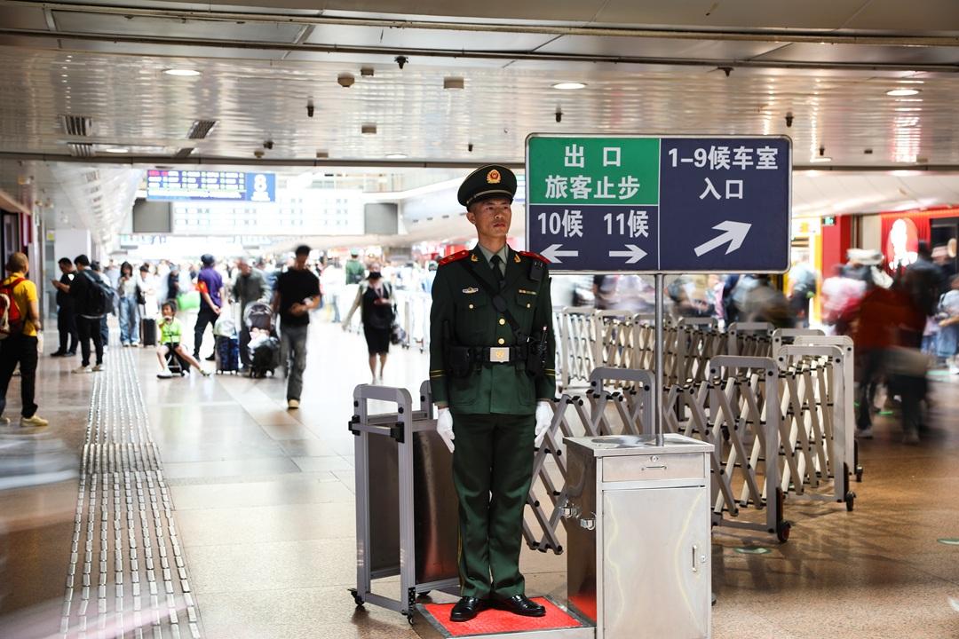 “五一期間,我們優(yōu)化勤務(wù)部署、科學(xué)籌措兵力,分別在安檢口、檢票口、候車區(qū)等重點(diǎn)部位布設(shè)多個哨位,在維護(hù)秩序的同時提供便民服務(wù),確保旅客出行安全順暢?!痹撝ш?duì)某中隊(duì)中隊(duì)長曹懷源說。