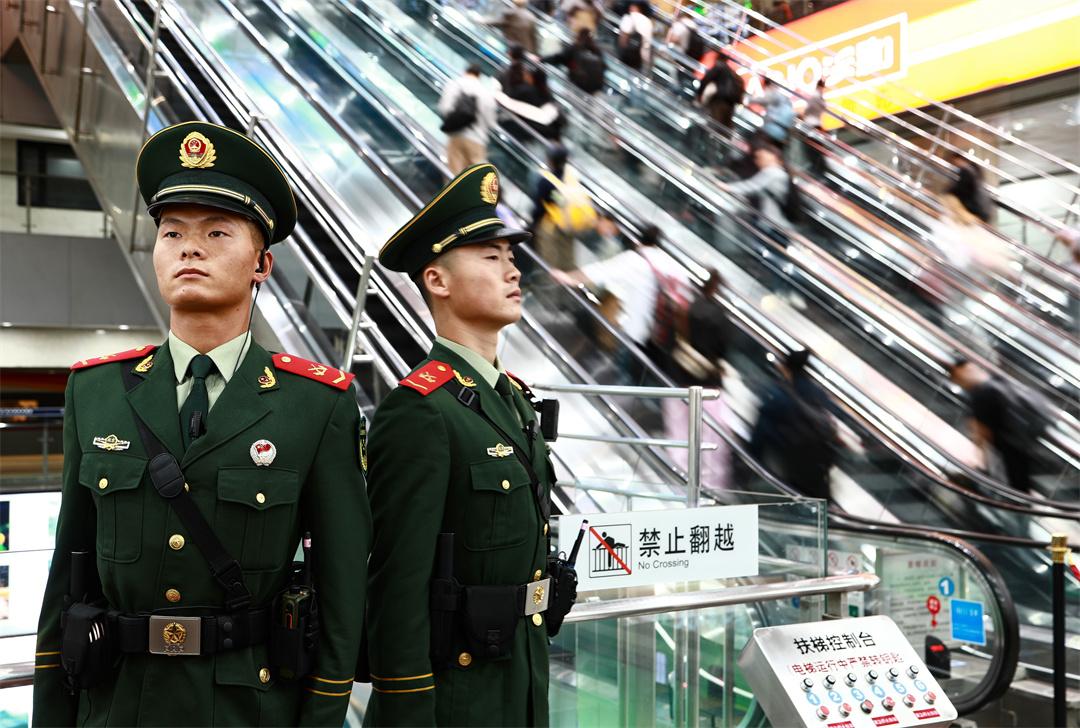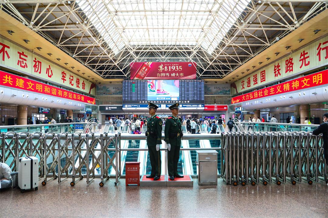 今年五一假期,北京地區(qū)迎來雙向出行高峰,各大交通樞紐客流激增。假期首日,北京西站客流量近40萬人次,擔(dān)負(fù)北京西站守衛(wèi)任務(wù)的武警北京總隊(duì)執(zhí)勤第六支隊(duì)官兵堅(jiān)守執(zhí)勤崗位,熱心為旅客提供幫助,全力守護(hù)旅客平安出行。