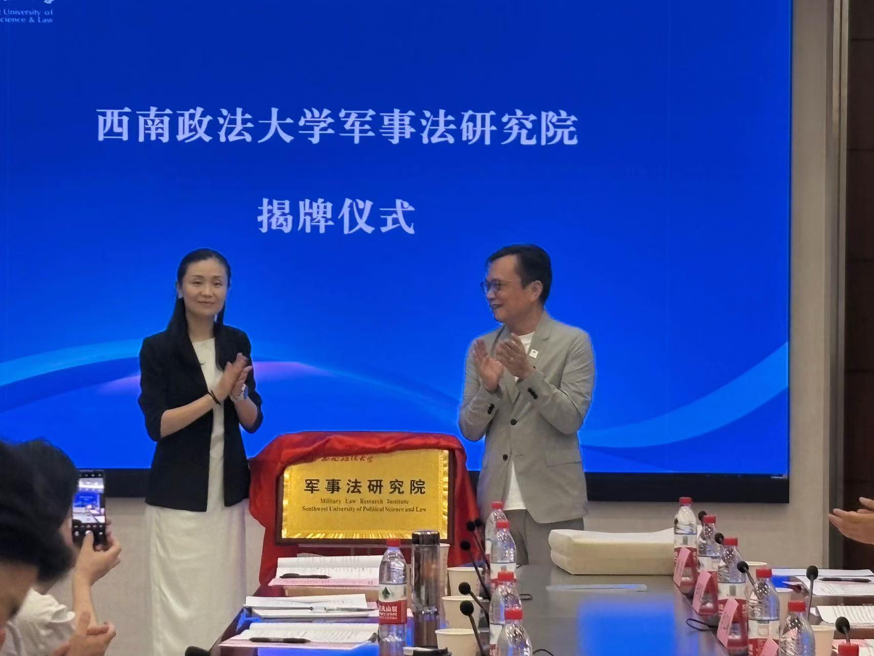 近日,西南政法大學軍事法研究院成立揭牌儀式暨自主設置目錄內(nèi)軍事法學二級學科專家論證會,在該校渝北校區(qū)舉行。