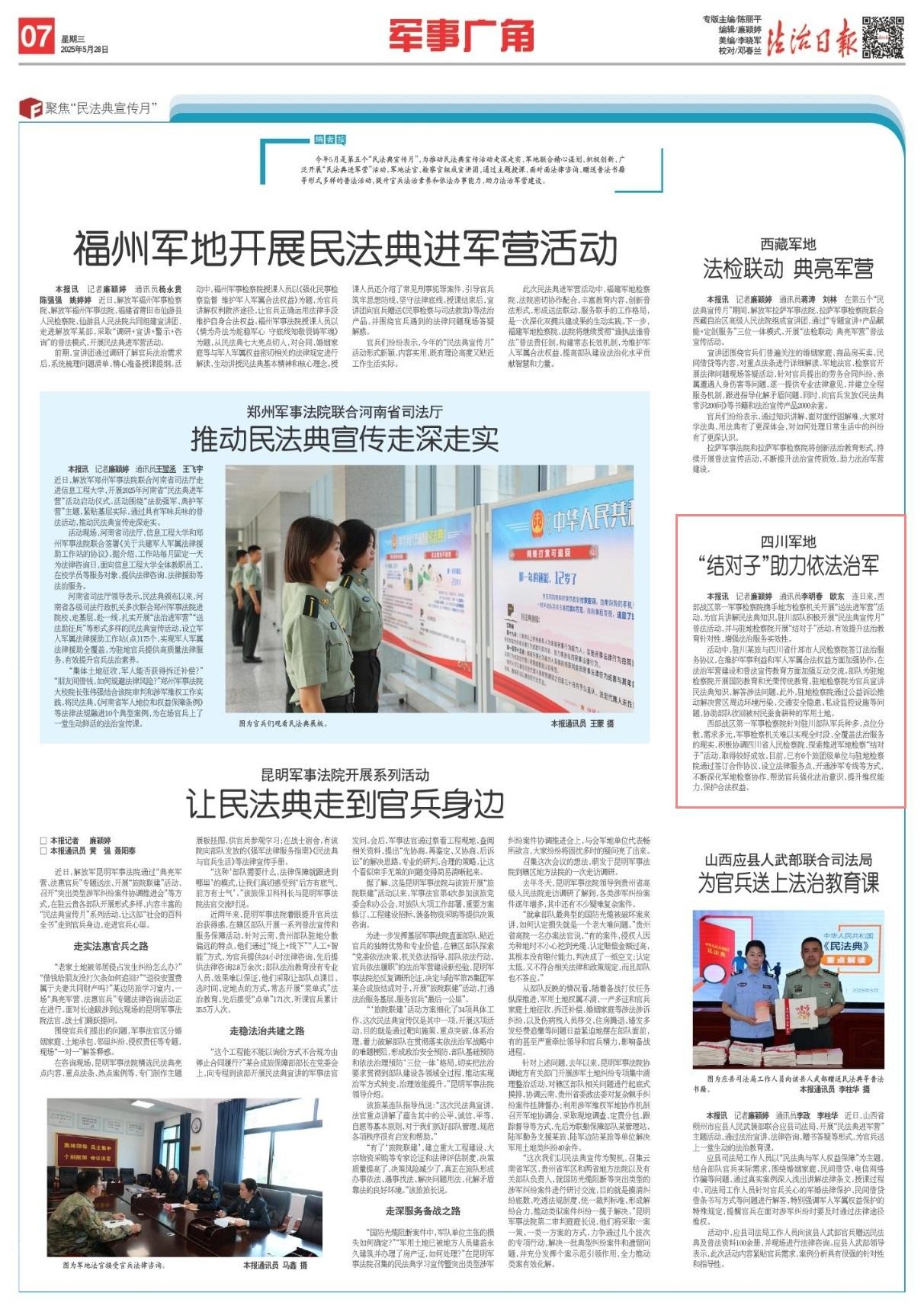 活動(dòng)中,駐川某旅與四川省什邡市人民檢察院簽訂法治服務(wù)協(xié)議,在維護(hù)軍事利益和軍人軍屬合法權(quán)益方面加強(qiáng)協(xié)作,在法治軍營(yíng)建設(shè)和普法宣傳教育方面加強(qiáng)互動(dòng)交流。部隊(duì)為駐地檢察院開展國(guó)防教育和光榮傳統(tǒng)教育,駐地檢察院為官兵宣講民法典知識(shí),解答涉法問題。此外,駐地檢察院通過公益訴訟推動(dòng)解決營(yíng)區(qū)周邊環(huán)境污染、交通安全隱患、私設(shè)監(jiān)控設(shè)施等問題,協(xié)助部隊(duì)收回被村民蠶食耕種的軍用土地。