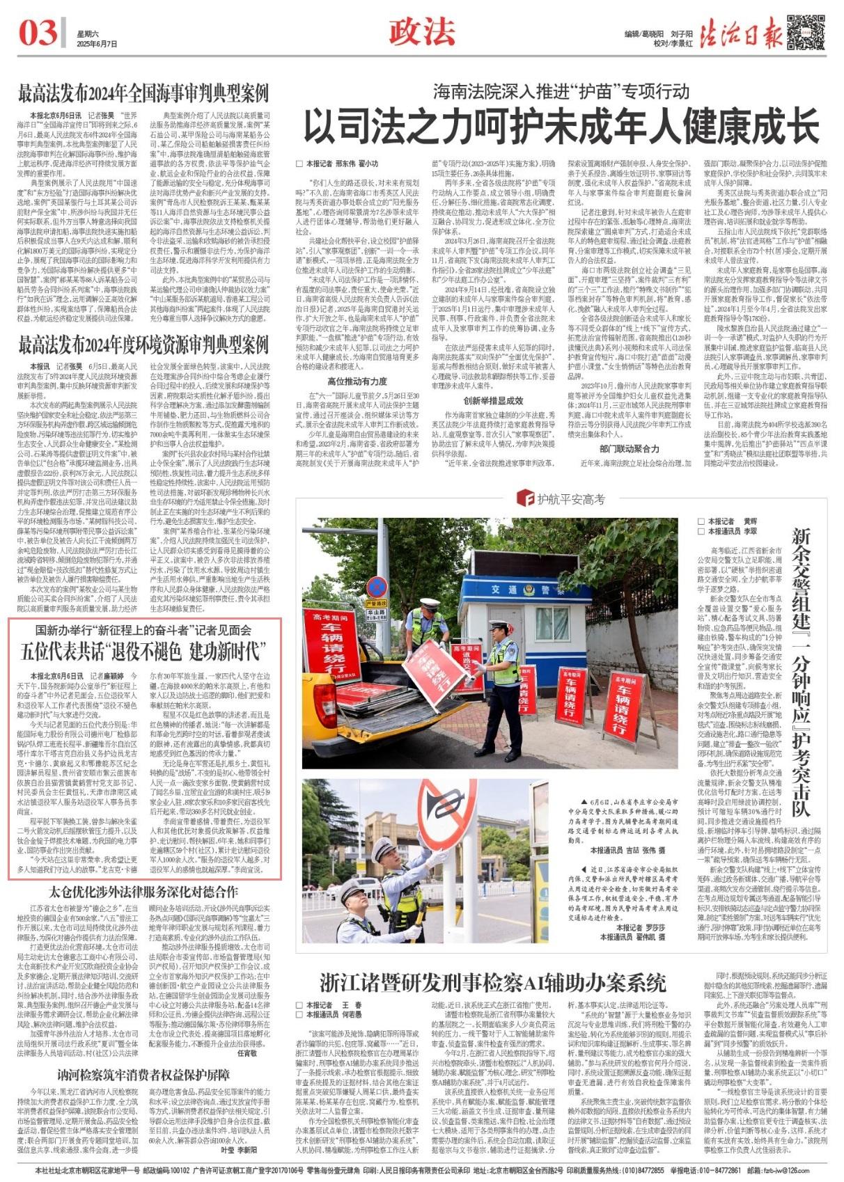 6月6日下午,國務(wù)院新聞辦公室舉行“新征程上的奮斗者”中外記者見面會,五位退役軍人和退役軍人工作者代表圍繞“退役不褪色 建功新時代”與大家進行交流。