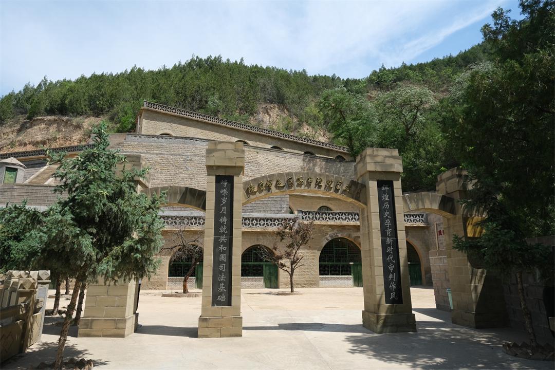 拾級(jí)而上,山頂一座莊嚴(yán)肅穆的三孔石拱門映入眼簾,“陜甘寧邊區(qū)高等法院舊址”11個(gè)鎦金大字在石拱門正中,兩側(cè)題寫“崢嶸歲月鑄就共和國司法基礎(chǔ) 輝煌歷史孕育新時(shí)代審判作風(fēng)”。