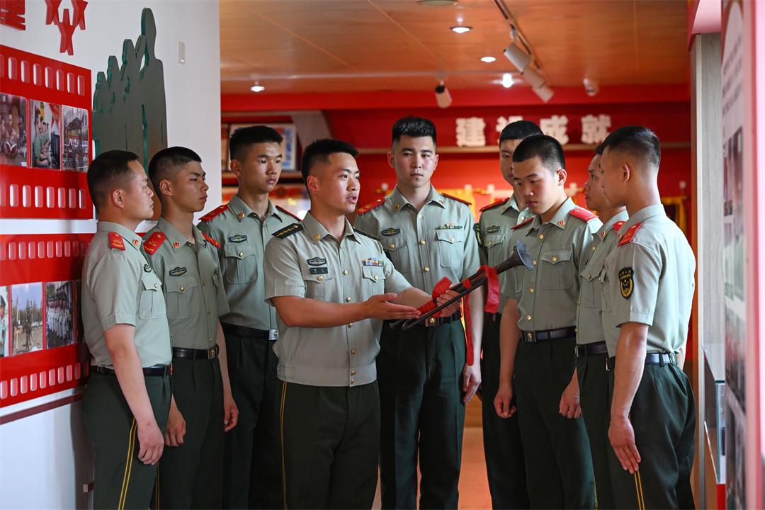 “眼前這把銹跡斑駁的軍號(hào),訴說(shuō)著歷盡烽煙的歷史。它是官兵沖鋒陷陣的領(lǐng)跑者,亦是中隊(duì)日新月異的見(jiàn)證者……”盛夏時(shí)節(jié),武警安徽總隊(duì)合肥支隊(duì)執(zhí)勤一大隊(duì)執(zhí)勤一中隊(duì)政治指導(dǎo)員潘翔,以“曬曬中隊(duì)傳家寶”為引,為全隊(duì)官兵上了一堂生動(dòng)的教育課。