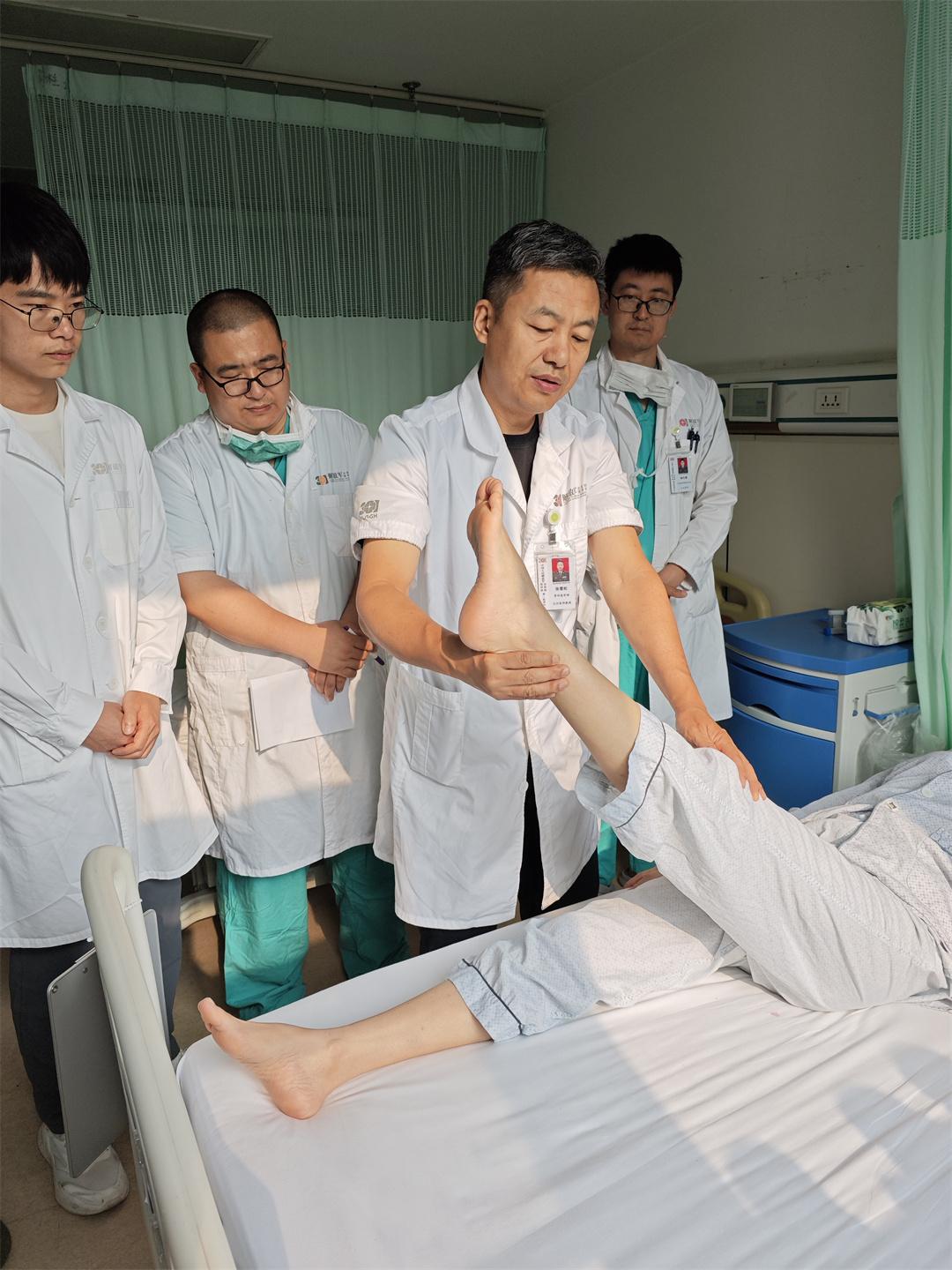圖為張雪松主任團隊查看患者術(shù)后恢復(fù)情況,叮囑康復(fù)注意事項。