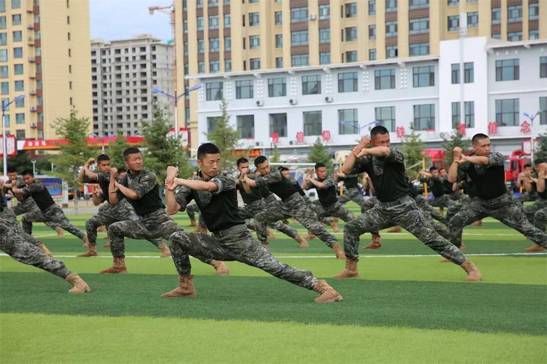 在武警興安支隊(duì)課目演示環(huán)節(jié),官兵們擒敵拳、刺殺操等課目霸氣凌厲、氣勢(shì)恢宏,展現(xiàn)出嚴(yán)謹(jǐn)扎實(shí)的戰(zhàn)斗作風(fēng)和奮發(fā)有為的精神風(fēng)貌。