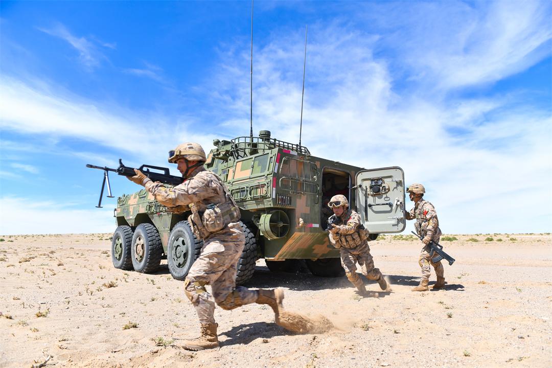 圖為“平型關(guān)大戰(zhàn)突擊連”在中蒙演習(xí)中下車戰(zhàn)斗。朱甫鑫 攝