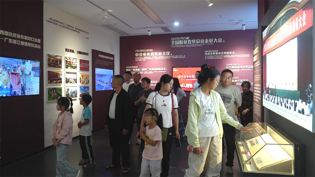 在“博物館奇妙游”環(huán)節(jié),航天家屬系統(tǒng)了解了脫貧攻堅(jiān)戰(zhàn)略從頂層設(shè)計(jì)到基層實(shí)踐的全過程。展館內(nèi),翔實(shí)的文字?jǐn)?shù)據(jù)、震撼的紀(jì)實(shí)影像、珍貴的實(shí)物展品生動(dòng)再現(xiàn)了涼山州上下勠力同心、攻堅(jiān)克難的偉大歷程。