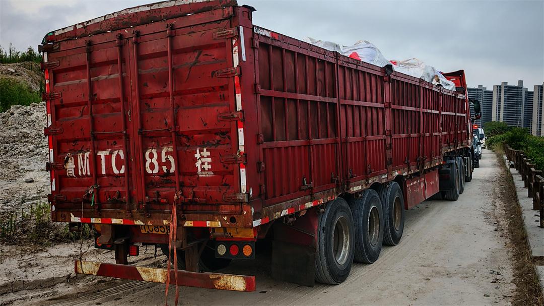 圖為轉(zhuǎn)移至半掛車的凍品。