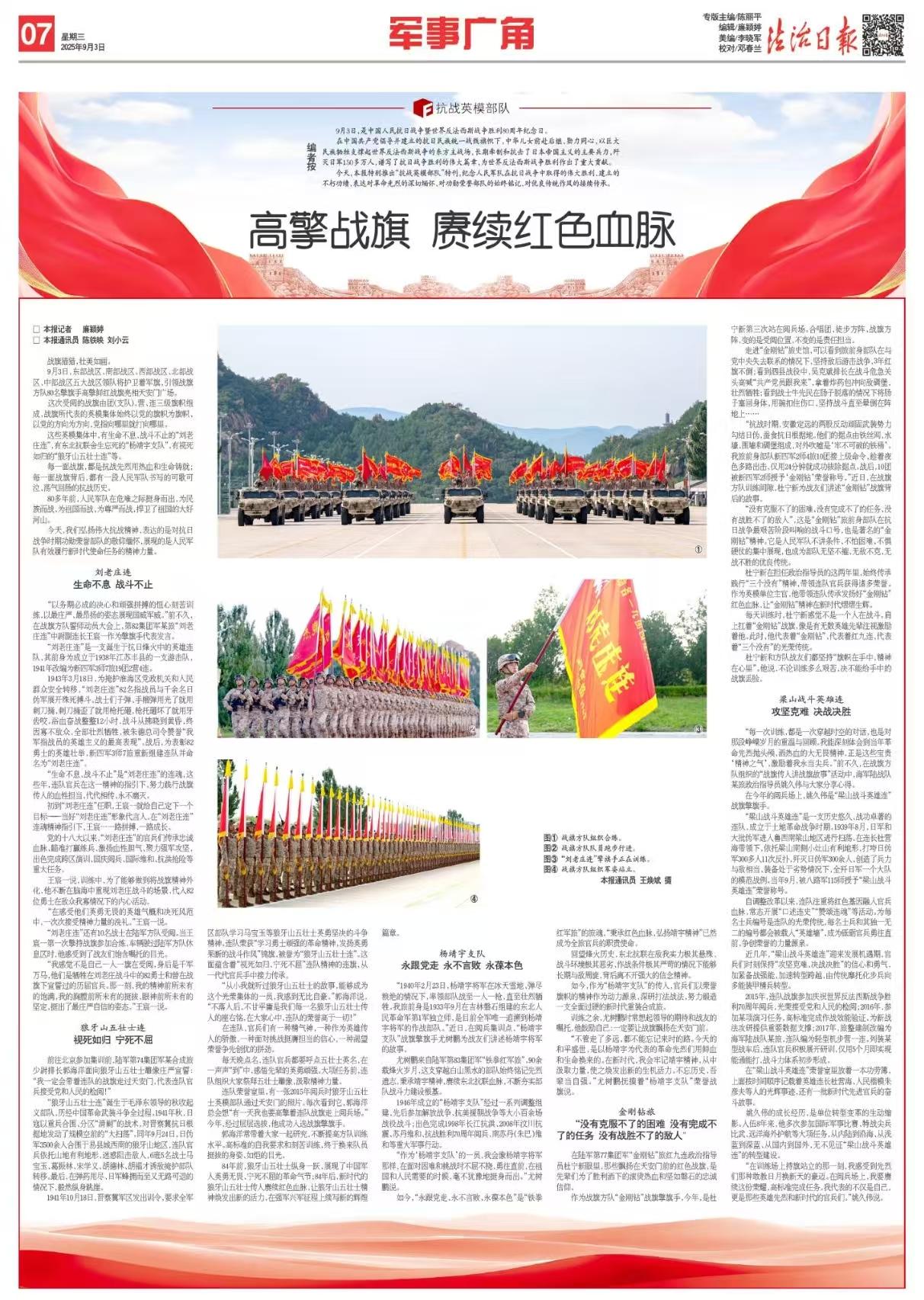 今天,本報特別推出“抗戰(zhàn)英模部隊”特刊,紀念人民軍隊在抗日戰(zhàn)爭中取得的偉大勝利、建立的不朽功績,表達對革命先烈的深切緬懷、對功勛榮譽部隊的始終銘記、對優(yōu)良傳統(tǒng)作風(fēng)的接續(xù)傳承。