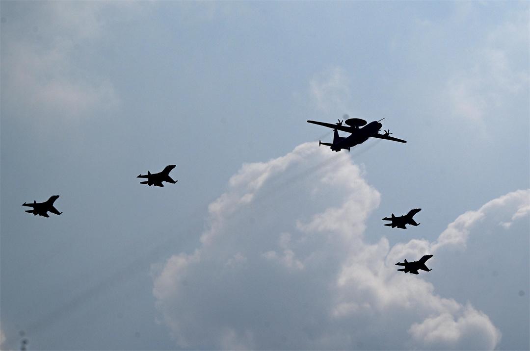 戰(zhàn)鷹呼嘯,首先飛過來的是預(yù)警指揮機(jī)梯隊(duì)??站?500A與殲-16戰(zhàn)機(jī)編隊(duì)、空警-600與殲-15T艦載機(jī)編隊(duì)依次接受檢閱。長空千里眼,云天中軍帳。隨著國產(chǎn)新型預(yù)警機(jī)研制列裝,我軍指揮控制、預(yù)警探測、協(xié)同打擊能力顯著提高。