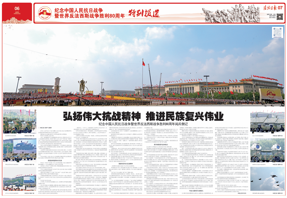 圖為9月3日,紀(jì)念中國人民抗日戰(zhàn)爭暨世界反法西斯戰(zhàn)爭勝利80周年閱兵式在北京隆重舉行。本報(bào)記者 楊晉峰 攝