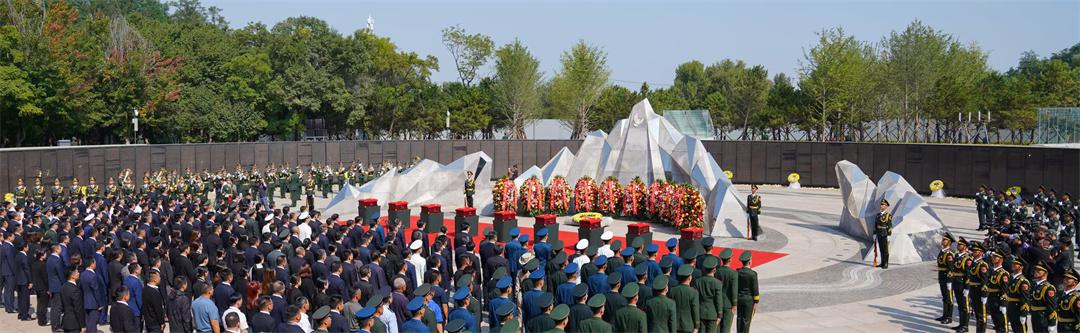 9月13日10時(shí),安葬儀式開(kāi)始。陵園下沉式紀(jì)念廣場(chǎng)環(huán)形烈士英名墻下,擺滿黃白相間的菊花,參加儀式的人們肅穆站立。軍樂(lè)隊(duì)奏響婉轉(zhuǎn)低回的《思念曲》,在解放軍儀仗司禮大隊(duì)官兵持槍護(hù)衛(wèi)下,禮兵們邁著整齊的步伐,護(hù)送志愿軍烈士遺骸棺槨緩步進(jìn)入紀(jì)念廣場(chǎng),全場(chǎng)奏唱中華人民共和國(guó)國(guó)歌。