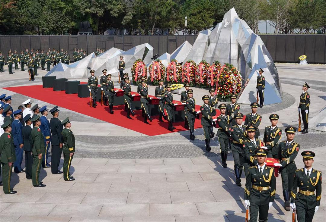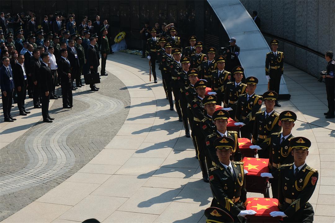 圖為9月13日,禮兵護(hù)送志愿軍烈士棺槨進(jìn)入沈陽(yáng)抗美援朝烈士陵園安葬地宮。張永進(jìn) 攝