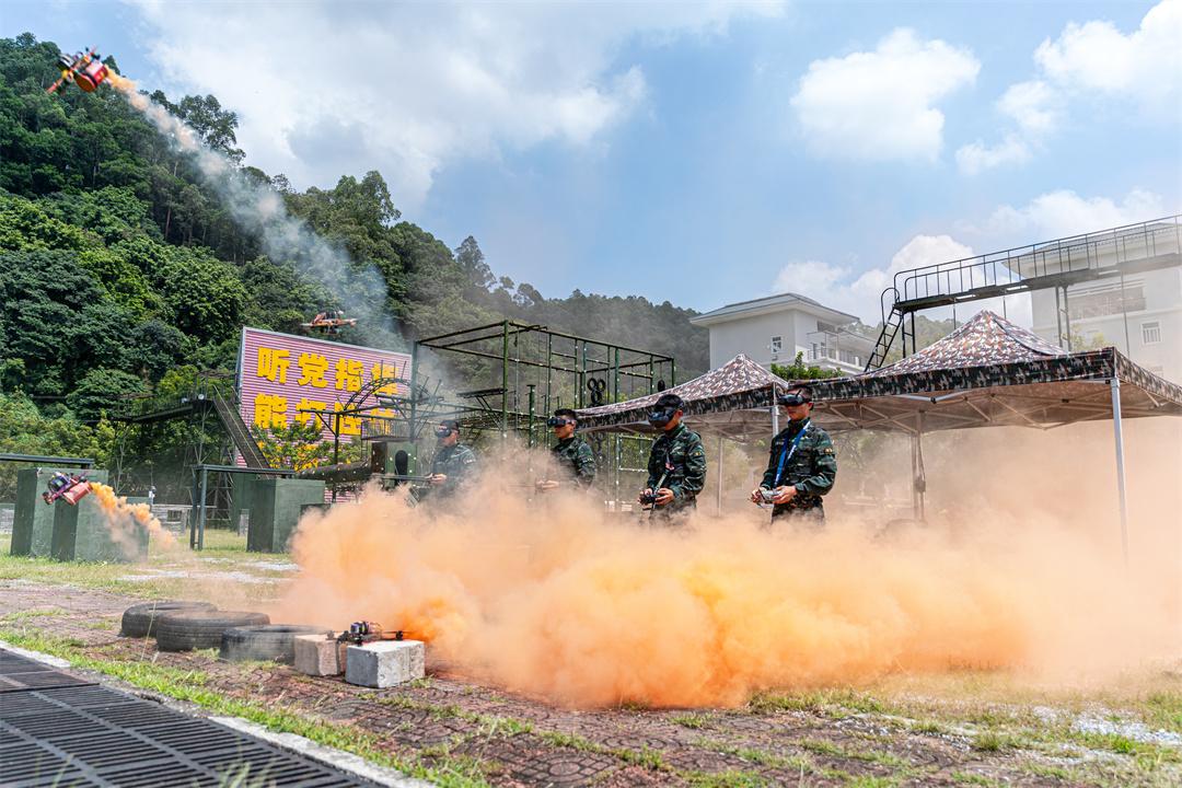 在陣陣喝彩聲中,高樓攀登、索降、無人機(jī)打擊目標(biāo)、火焰噴射器使用等課目陸續(xù)展開。綠茵場(chǎng)上一時(shí)殺聲震天,火舌躍動(dòng),硝煙彌漫。