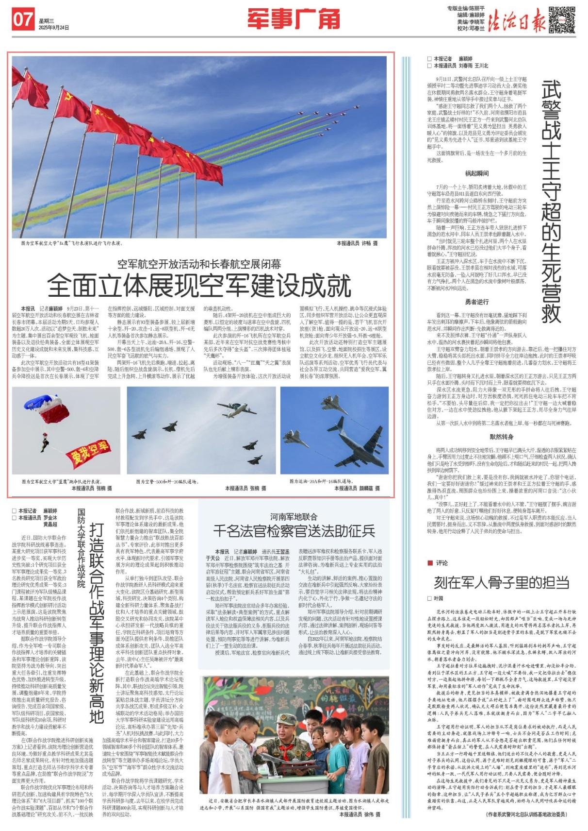 9月23日,第十一屆空軍航空開放活動和長春航空展在吉林省長春市閉幕。本屆活動為期5天,日均參觀人數(shù)超20萬人次?;顒右浴白穳艨仗?、制勝未來”為主題,集中展出百余型空軍現(xiàn)役飛機、地面裝備以及退役經(jīng)典裝備,全面立體展現(xiàn)空軍歷史文化建設(shè)成就和未來發(fā)展,集科技感、互動感于一體。