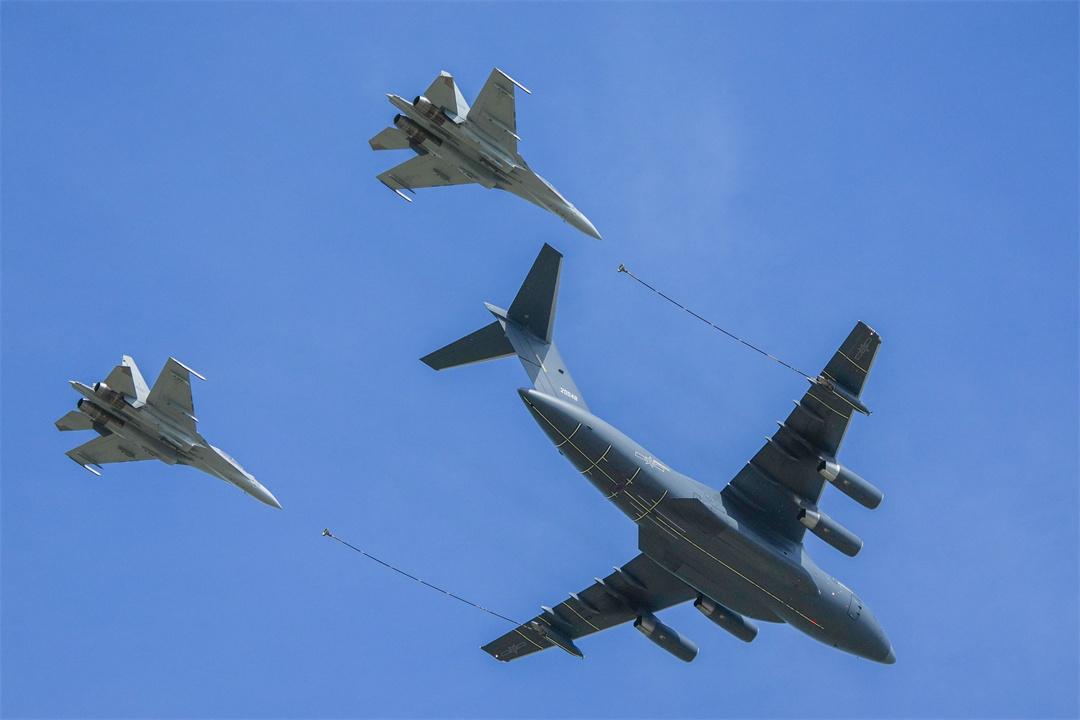 圖為運油-20A和殲-16編隊通場。顏麟蘊 攝
