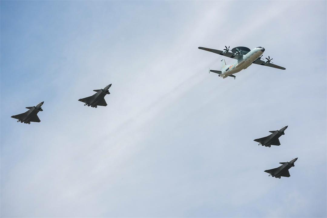 圖為空警-500和殲-20編隊通場。張楠 攝