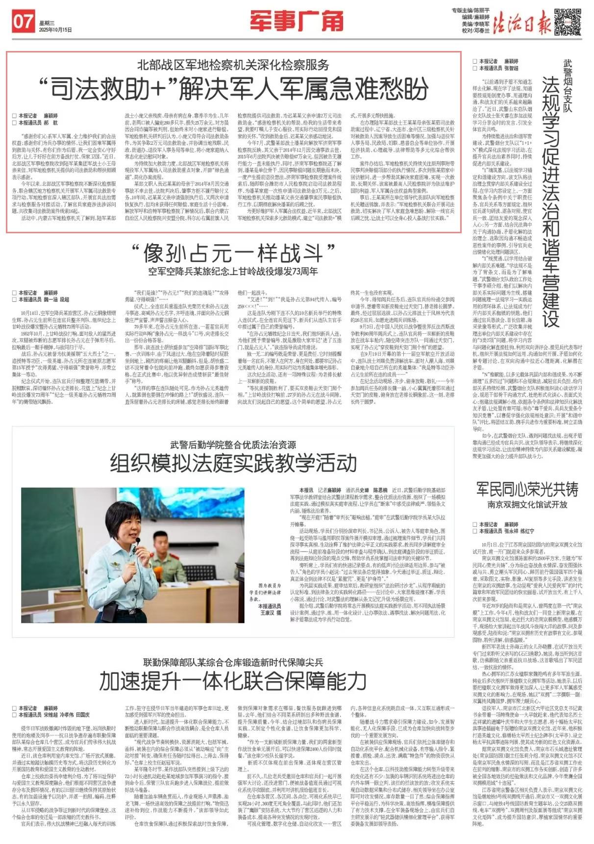 為持續(xù)加大救助力度,北部戰(zhàn)區(qū)軍地檢察機(jī)關(guān)將現(xiàn)役軍人軍屬納入司法救助重點對象,開辟“綠色通道”,簡化辦案流程。
