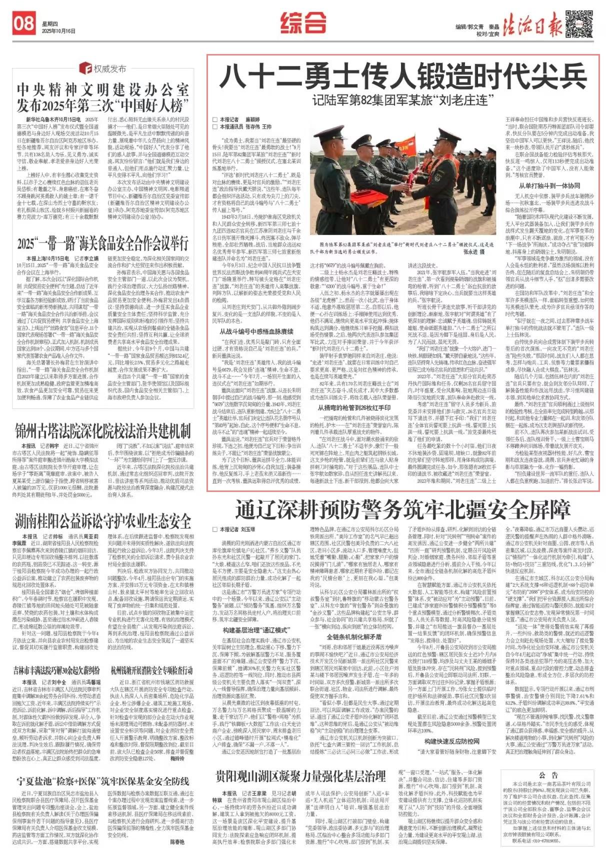 任務(wù)最吃緊的數(shù)十個小時里,他們?nèi)找共恍莸匮b沙袋、固堤壩、堵缺口,就像82年前的先輩們堅守陣地那樣,用身體構(gòu)成防洪堤,最終圓滿完成任務(wù)。如今,那張摁有26枚紅手印的請戰(zhàn)書,被收藏進“劉老莊連”榮譽室。