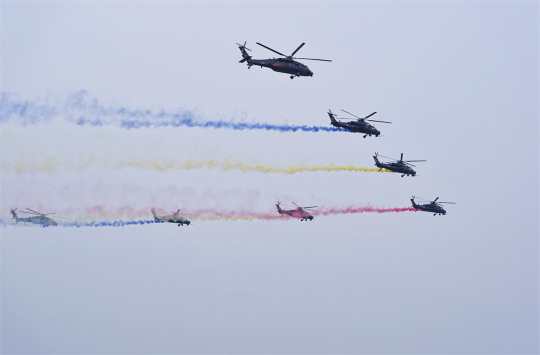 在開幕式飛行表演環(huán)節(jié),陸軍“風(fēng)雷”飛行表演隊(duì)以七機(jī)通場(chǎng)飛行拉開帷幕,先后向觀眾演示了雙機(jī)對(duì)沖、四機(jī)開花,以及快速營(yíng)救、繞點(diǎn)回轉(zhuǎn)等實(shí)戰(zhàn)應(yīng)用演示,為觀眾呈現(xiàn)了一場(chǎng)融合技術(shù)、藝術(shù)與力量的空中盛宴,全面展示了國(guó)產(chǎn)直升機(jī)的卓越性能和飛行員的精湛技術(shù)。同時(shí),也充分展示了陸軍航空兵部隊(duì)轉(zhuǎn)型建設(shè)和實(shí)戰(zhàn)化訓(xùn)練成效。