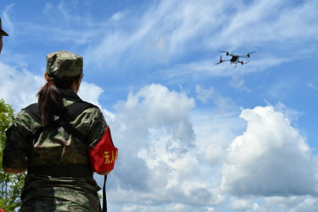 圖為“一曼”女子民兵分隊無人機(jī)操作手進(jìn)行課目演示。