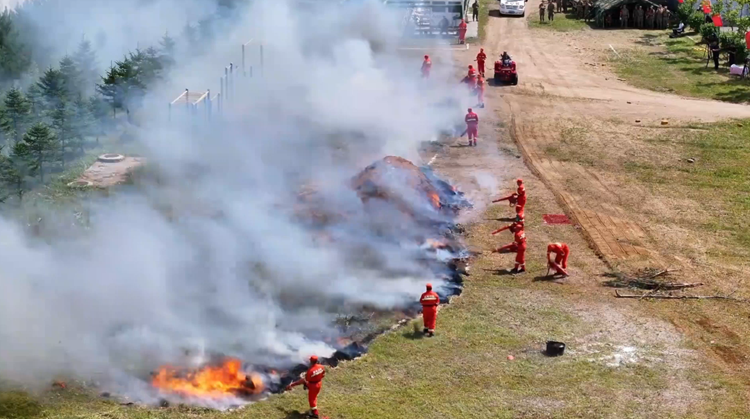 在空中和地面力量協(xié)同配合下,大火很快被撲滅。這是伊春市黨政軍領(lǐng)導(dǎo)參加“軍事日”暨特色民兵分隊建設(shè)觀摩活動的一個鏡頭。