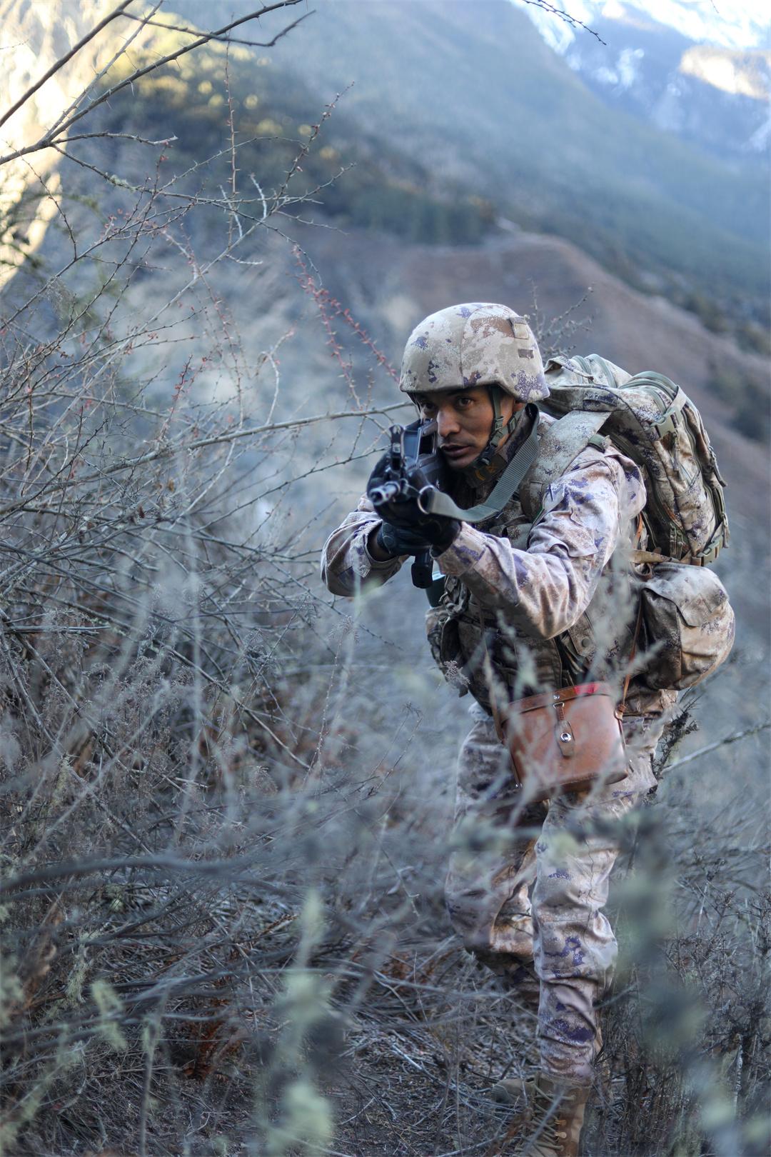 今年7月,連隊組織“阿相比拉”巡邏。此時剛開山不久,又逢雨季,雪雨交加,次羅布帶領偵察班走在最前面?!苞椬煅隆毖卤趦A角70多度,此時冰錐易落,需拉大間距觀察通過;“沼澤地”東側30米有硬土層,可繞行避陷……憑借對防區(qū)的熟悉,他一次次帶領隊伍規(guī)避風險,安全抵達最前沿。