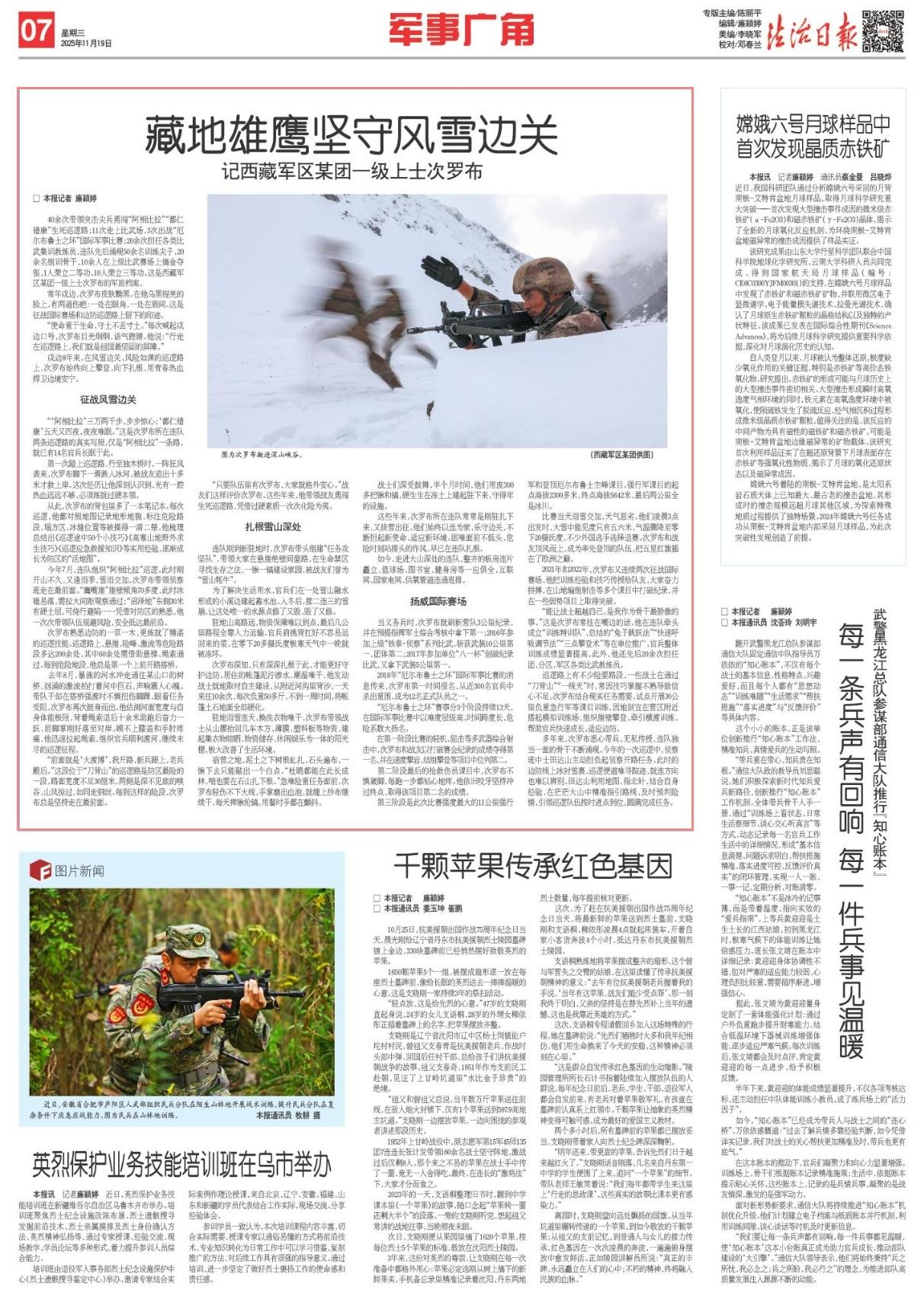 這些年來,次羅布所在連隊常常是剛駐扎下來,又拔營出征。他們始終以連為家、樂守邊關,不斷擔起新使命、適應新環(huán)境。困難面前不低頭、危險時刻站排頭的作風,早已在連隊扎根。