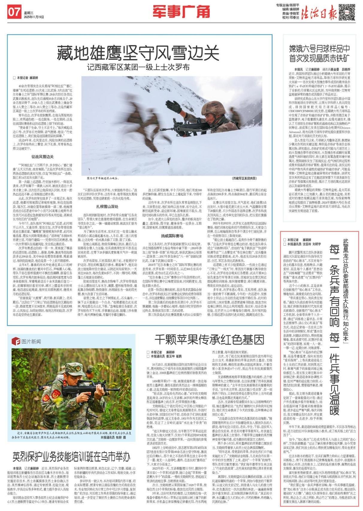 在這本賬本的推動下,官兵們凝聚力和向心力顯著增強(qiáng)。訓(xùn)練場上,骨干們根據(jù)賬本記錄精準(zhǔn)施策;生活中,依據(jù)賬本提示貼心關(guān)懷。這些賬本上,記錄的是兵情兵事,凝聚的是戰(zhàn)友情深,激發(fā)的是強(qiáng)軍動力。