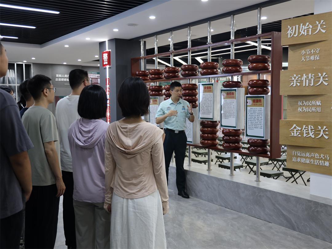 圖為網(wǎng)絡空間部隊某部新招聘錄用的文職人員參觀警示教育展廳。