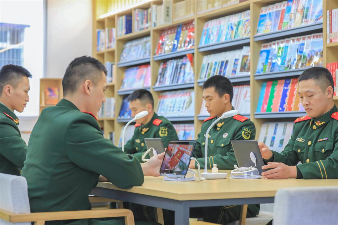 圖為官兵利用手機等載體學習法律知識。李東 攝