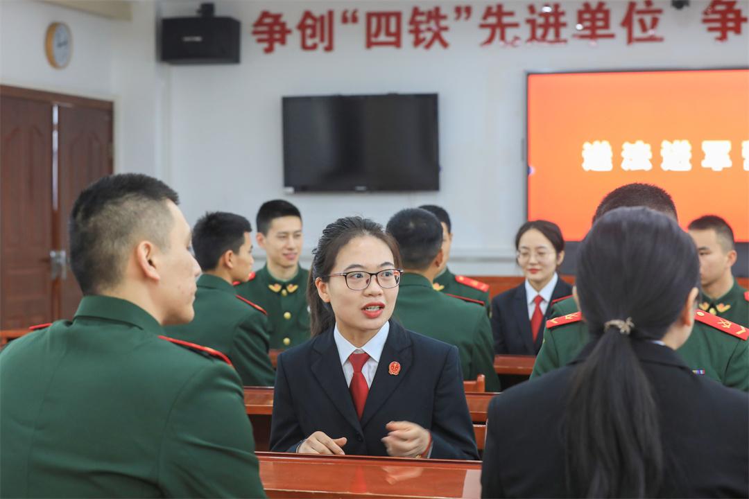 圖為駐地律師正在為官兵排憂解惑提升法律知識。李東 攝