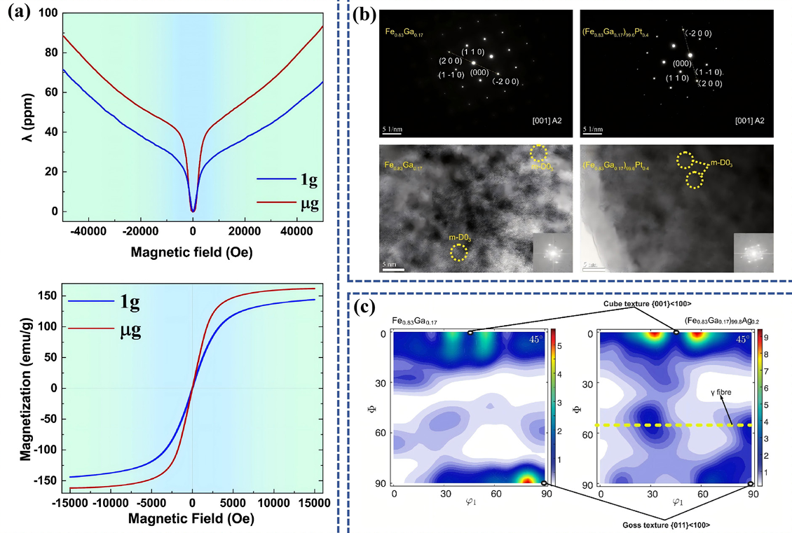 圖為空間及地面鐵基磁致伸縮合金樣品多相微結(jié)構(gòu)調(diào)控與性能優(yōu)化。