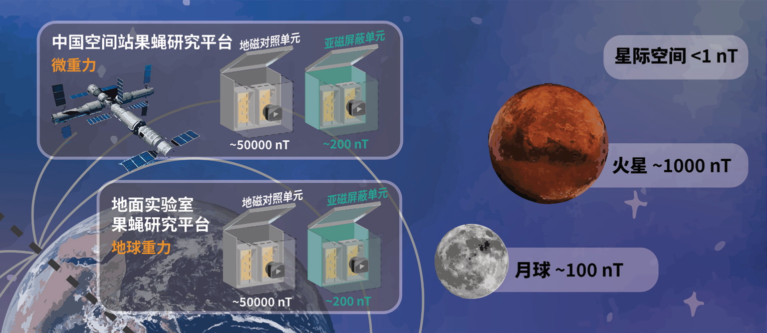 圖為空間亞磁-微重力復(fù)合環(huán)境果蠅培養(yǎng)及生物學(xué)效應(yīng)研究體系。