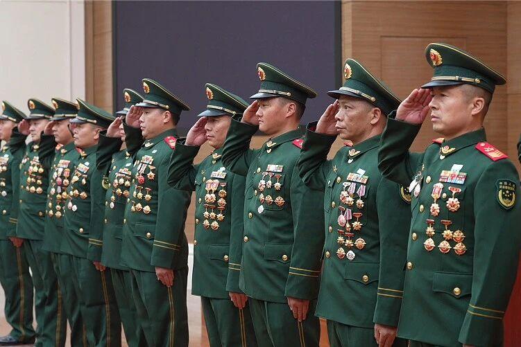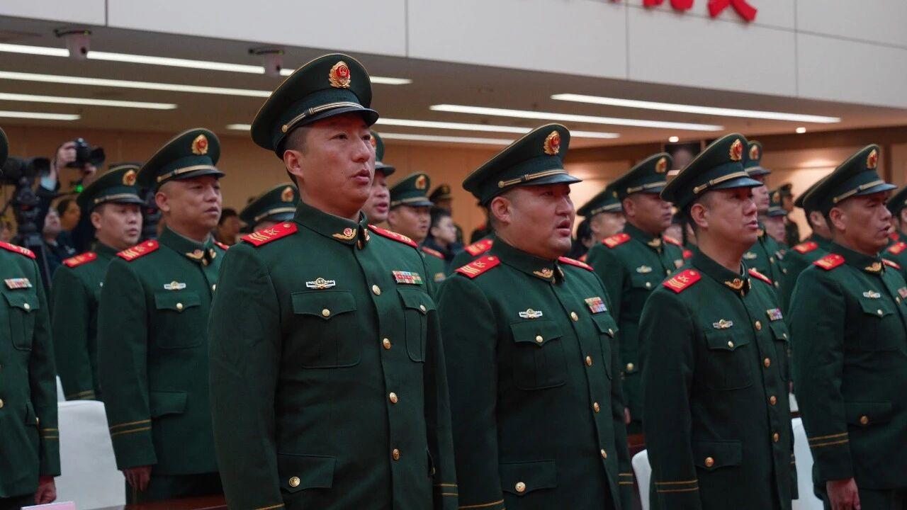 宣布授銜命令后,晉升人員更換上嶄新的警銜,胸掛閃耀的軍功章,向現場全體戰(zhàn)友莊嚴敬禮,全場響起熱烈掌聲。