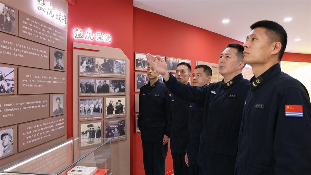 “以前的艦艇裝備簡陋,先輩們靠著對黨的絕對忠誠,在海上槍林彈雨中殺出一條血路?,F(xiàn)在裝備先進(jìn)了,但忠誠的底色不能變,越是走得遠(yuǎn)、沖在前,越不能偏離航向?!奔t河艦一級軍士長韓建廷站在文化長廊前對年輕艦員說。