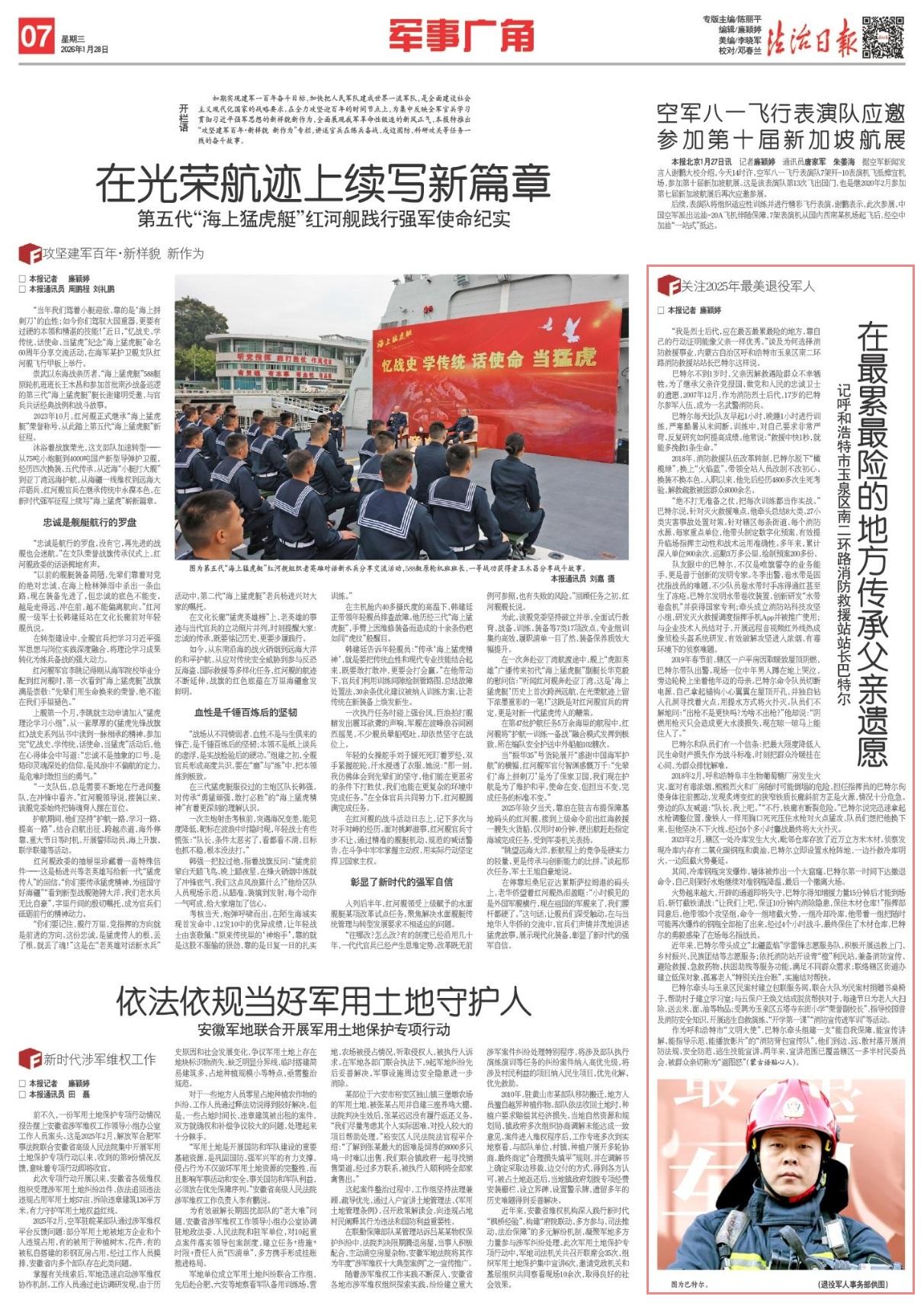 “我是烈士后代,應(yīng)在最苦最累最險(xiǎn)的地方,靠自己的行動(dòng)證明能像父親一樣優(yōu)秀?!闭劶盀楹芜x擇消防救援事業(yè),內(nèi)蒙古自治區(qū)呼和浩特市玉泉區(qū)南二環(huán)路消防救援站站長巴特爾這樣說。