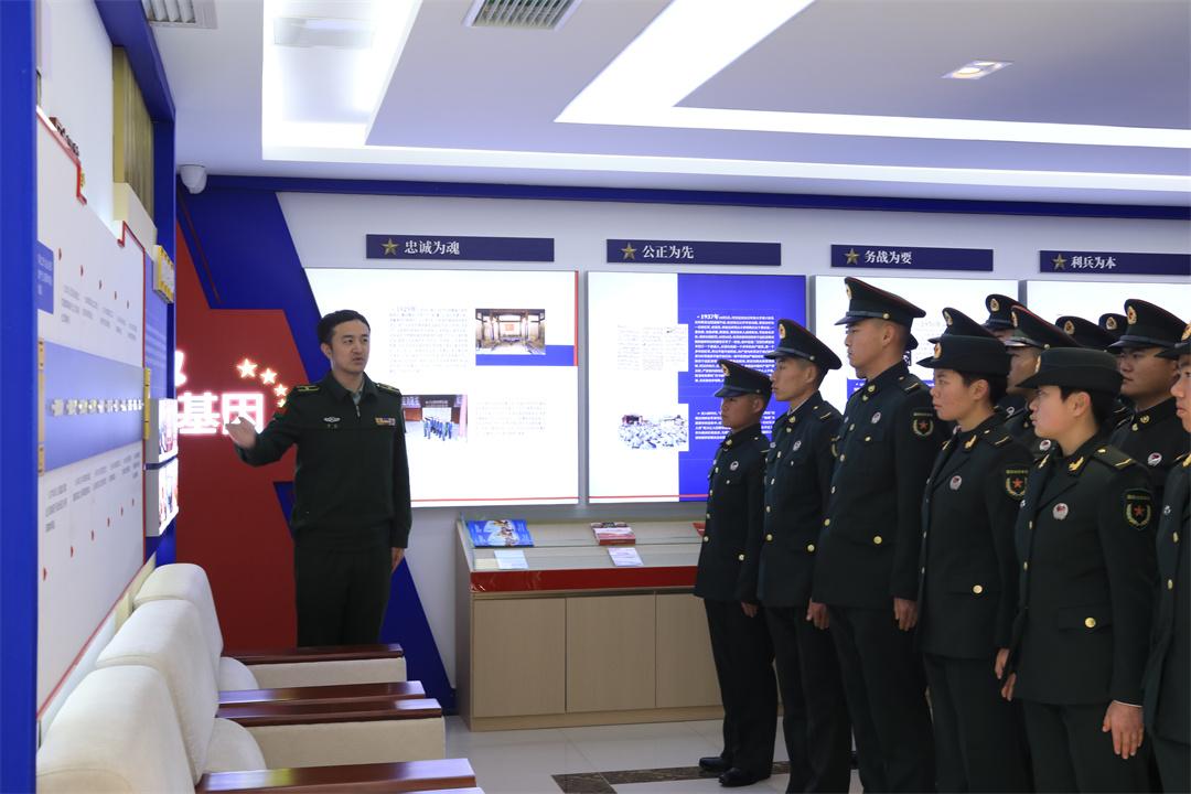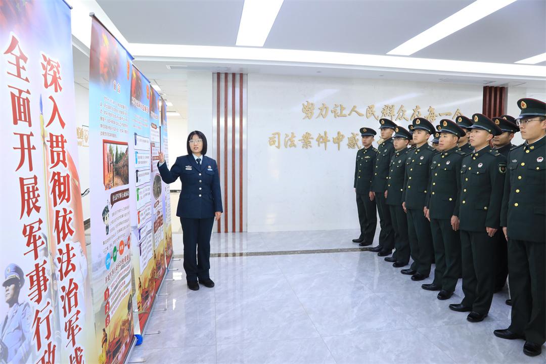 新兵們參觀了合肥軍事法院法治文化長廊、法治宣傳產(chǎn)品展柜和訴訟服務中心。在專門設立的“涉軍法律政策”展區(qū),軍事法官結(jié)合宣傳展板和多媒體設備,深入淺出地講解刑法、民法典涉軍條款以及軍人地位和權益保障法相關內(nèi)容。