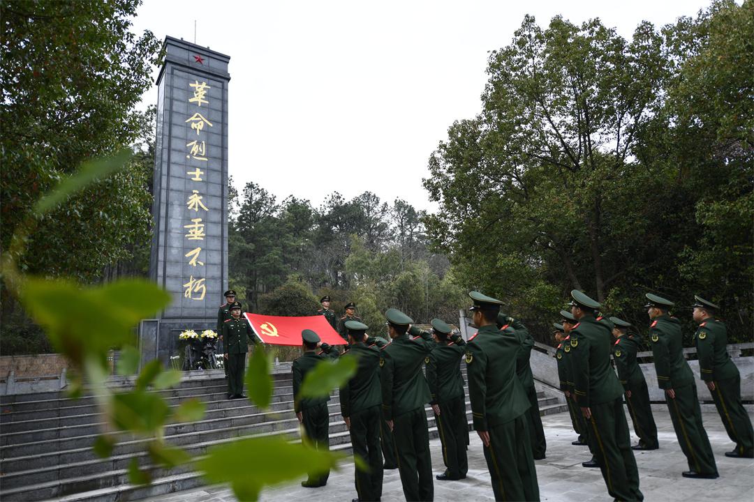 圖為官兵在烈士紀念碑前莊嚴宣誓。