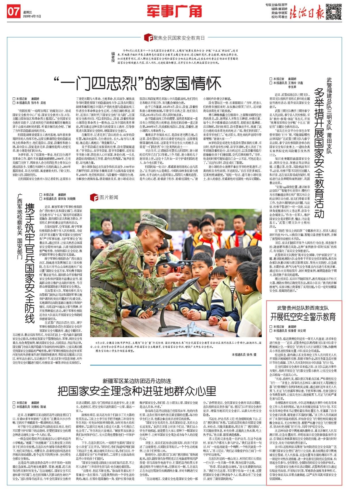 在全民國(guó)家安全教育日來(lái)臨之際,該支隊(duì)以此次事件為契機(jī),組織開(kāi)展低空飛行器安全警示教育,讓低空安全理念深植每一名官兵心中。