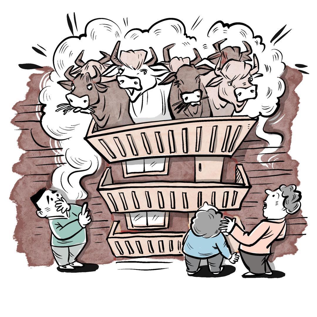 近日,在四川省南充市某小區(qū)內(nèi),一業(yè)主因在自家5樓陽(yáng)臺(tái)養(yǎng)了7頭牛被投訴,引起廣泛關(guān)注。該小區(qū)居民稱,不僅能聽到牛叫聲,還能聞到牛糞的味道,給大家造成了很大困擾。目前,有關(guān)部門已將牛運(yùn)走。