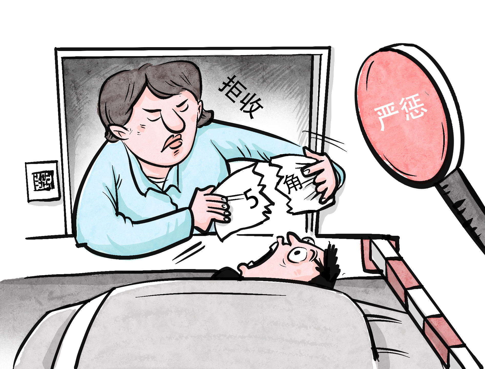 點(diǎn)評(píng):人民幣是我國(guó)的法定貨幣,拒收并撕毀人民幣不僅侵犯了消費(fèi)者自由選擇支付方式的權(quán)利,而且影響了人民幣的正常流通,對(duì)此必須予以嚴(yán)懲,以維護(hù)人民幣和消費(fèi)者的尊嚴(yán)。