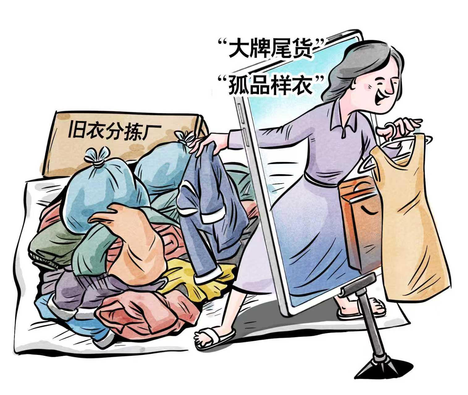 據(jù)媒體近日報道,一些平臺的電商直播間里所謂的“大牌尾貨”“孤品樣衣”,實際上來自舊衣回收。這些二手衣物來源繁雜,既有舊衣分揀廠的貨源,也有來自垃圾站的貨品,但直播間商家對此絕口不提,只以“微臟”“微瑕”等話術進行銷售。