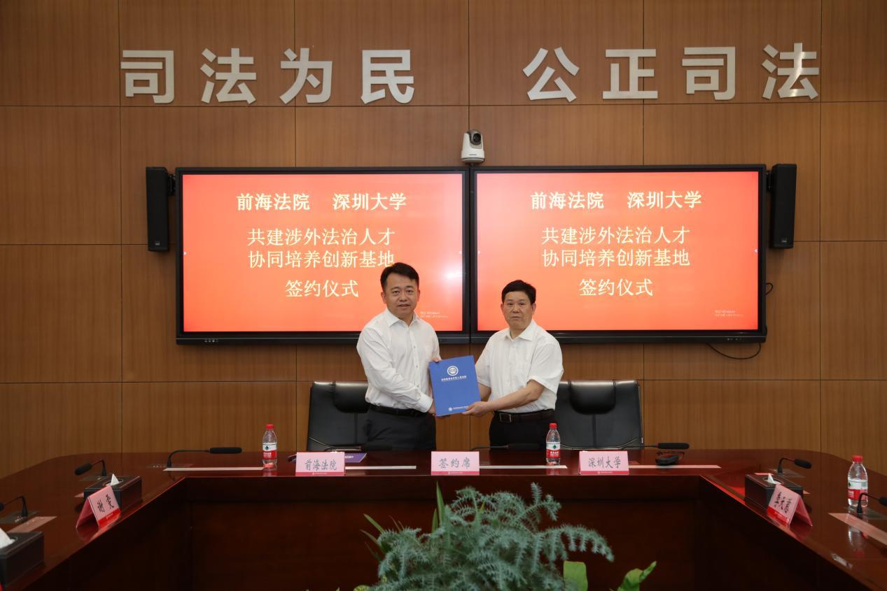前海法院與深圳大學(xué)簽署《合作框架協(xié)議》,雙方將在合作共建涉外法治人才協(xié)同培養(yǎng)創(chuàng)新基地、推進(jìn)司法研修學(xué)者和司法研修生計(jì)劃、合作開展司法理論和實(shí)踐研究等方面進(jìn)行合作,實(shí)現(xiàn)更高水平的交流合作和資源共享,共同為深圳法治建設(shè)培養(yǎng)更多既具有理論基礎(chǔ)、又具有實(shí)務(wù)能力的新時(shí)代高素質(zhì)法治人才。