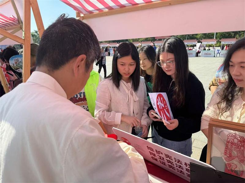 12月4日,2024年國家憲法日宣傳暨廣東省潮州市法治文化集中宣傳展示主場活動在潮州市法治文化公園舉行,多部門通過憲法宣誓、法律咨詢、法治文化作品集中展示、非遺+法治表演、有獎競答等豐富形式,向市民群眾宣傳憲法。